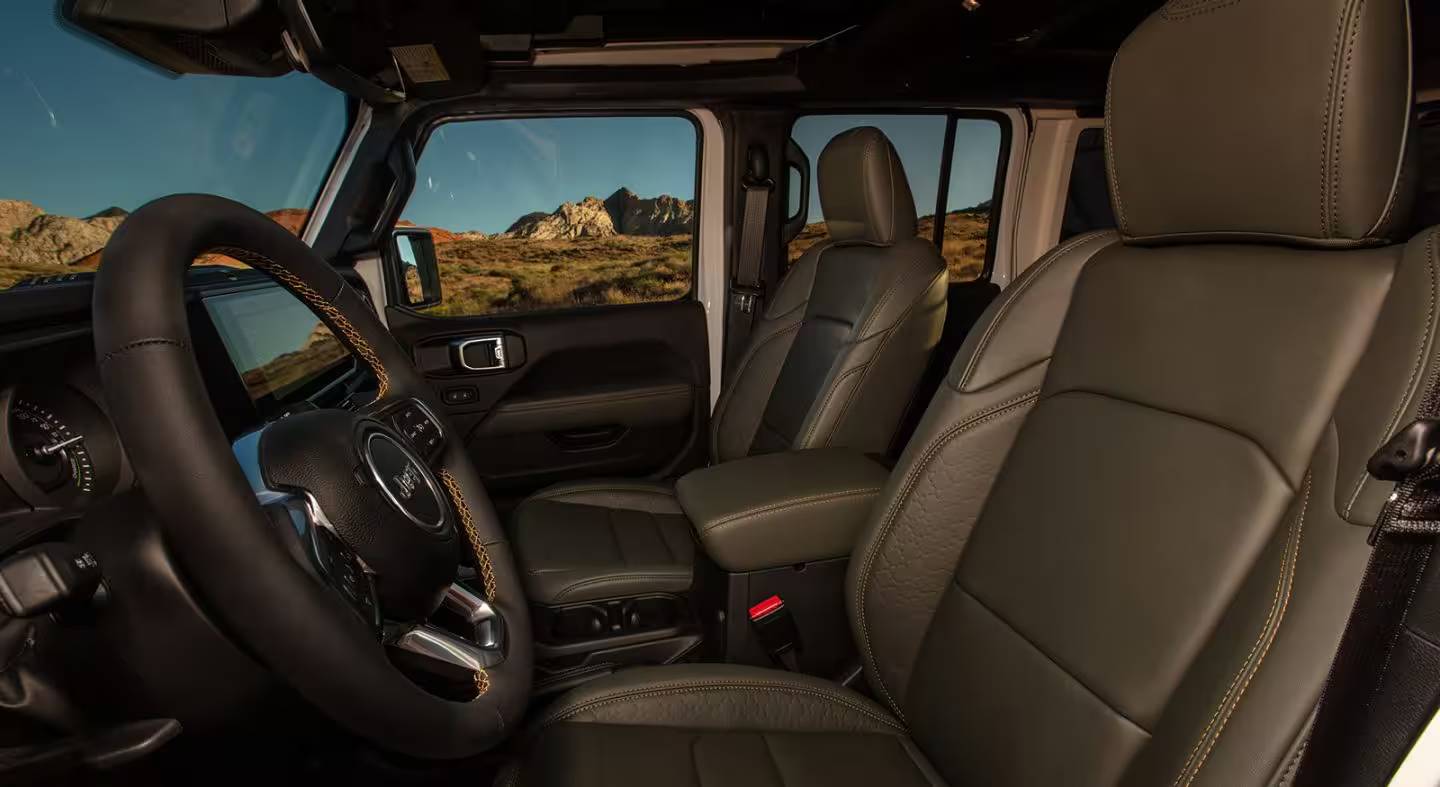 Jaunie Wrangler 4xe Plug-in Hybrid priekšējie sēdekļi ir pārveidoti, lai pirmo reizi piedāvātu jau standarta aprīkojumā 12 virzienos pielāgojamus un elektriski vadāmus sēdekļus. Vadītāja un priekšējā pasažiera sēdekļi, kas ir optimizēti labākai redzamībai un ir paredzēti braukšanai pat ūdenī, ļauj viegli iestatīt vēlamo sēdvietas komfortu.